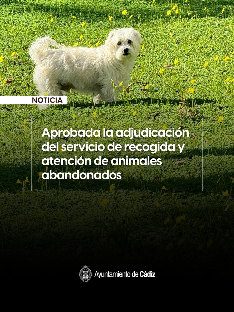 El Ayuntamiento de Cádiz ha aprobado la adjudicación del contrato para la prestación del servicio de recogida, transporte, albergue y adopción de animales abandonados, perdidos, extraviados o cedidos por sus propietarios, así como el servicio de urgencia municipal.