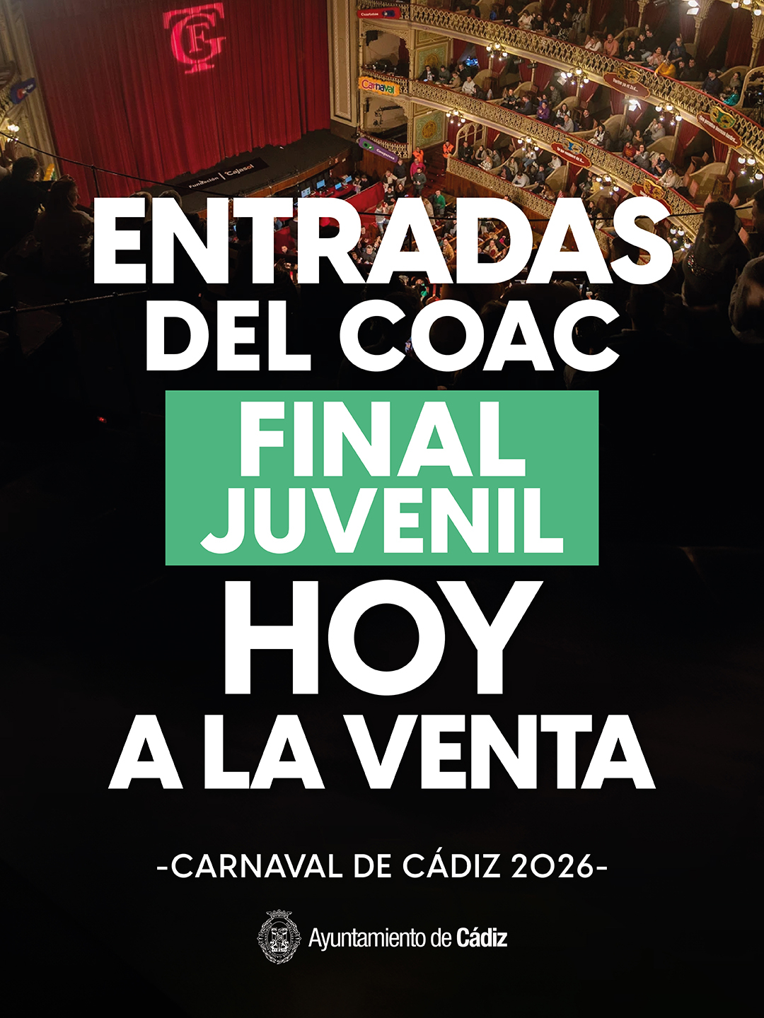 Las entradas para la Final de la categoría de Juveniles del Concurso Oficial de Agrupaciones Carnavalescas de 2026 salen a la venta este sábado, 31 de enero de 2026, a partir de las 10 horas. La Final tendrá lugar el 6 de febrero a las 17:00 horas.