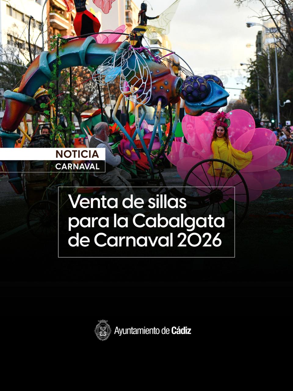 Las sillas para la Cabalgata Magna del Carnaval de Cádiz 2026 que se desarrollará el próximo domingo 15 de febrero a partir de las 17.30 horas, se pondrán a la venta a partir de este jueves 22 de enero. La empresa concesionaria Romian Producciones S. L. primero abrirá la venta ‘online’ de localidades, desde las 10 horas de este jueves hasta las 10 horas del próximo jueves 29 de enero, en la página web https://www.enterticket.es/eventos/gran-cabalgata-del-carnaval-de-cadiz-2026-230501. En internet estarán disponibles las sillas ubicadas en el tramo comprendido entre Varela y las Puertas de Tierra.