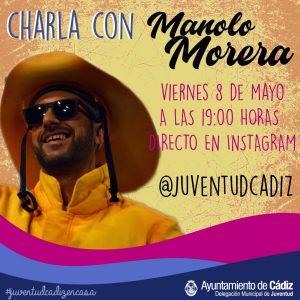 Manolo Morera y el jugador del Cádiz C.F. Iza Carcelen, en los directos de la Delegación de Juventud